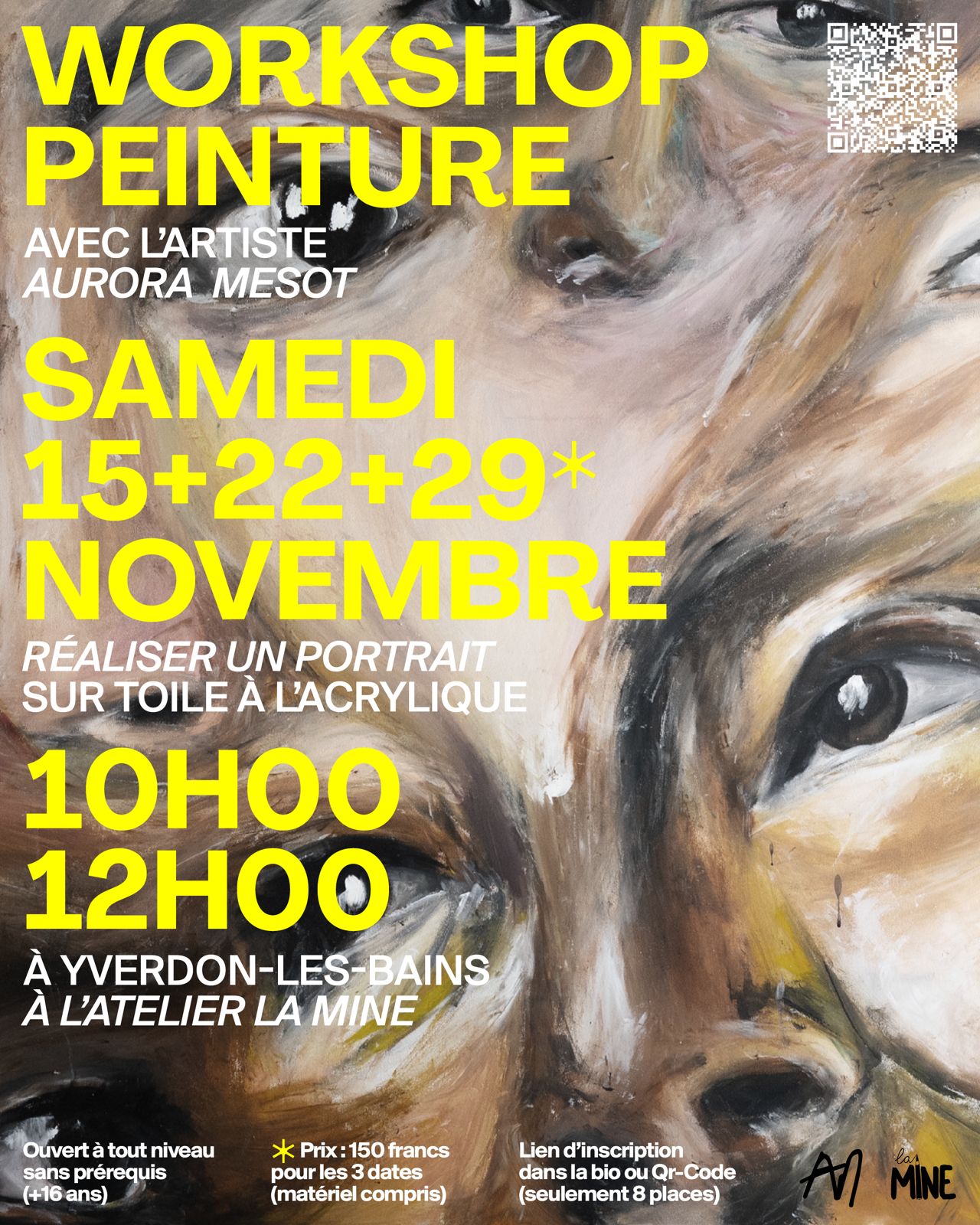 Ce workshop est ouvert à tous les niveaux : que vous soyez débutant·e ou déjà passionné·e de peinture, vous repartirez avec de nouvelles techniques et un portrait réalisé par vos soins.